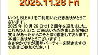 12周年パーティー開催します!